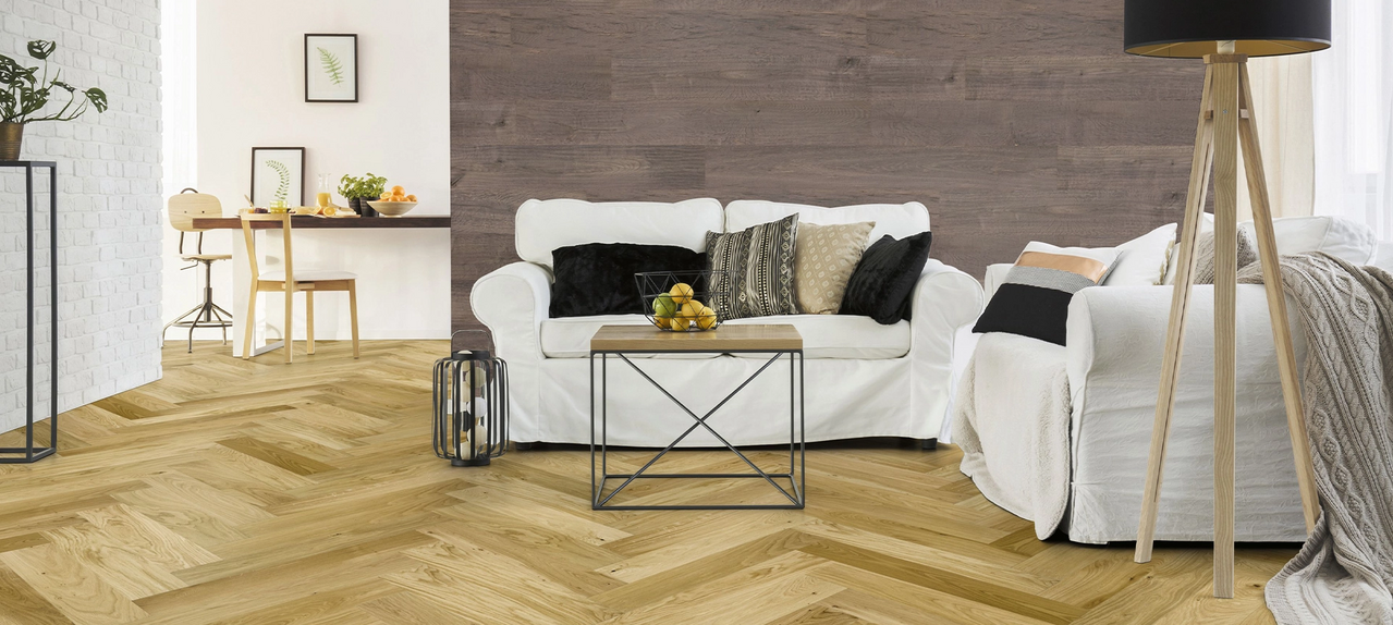 Die Vorliebe für Eiche als Parkettholz findet sich auch Fischgrätparkett wieder. So bieten wir Ihnen verschiedene Varianten an Fischgrätparkett aus Eiche – spannende Stile von harmonisch bis rustikal. Dank der unterschiedlichen Farben und Sortierungen von Eiche genießen Sie alle Möglichkeiten. Hell und rustikal, kräftiges braun und harmonisch oder auch nahezu schwarz … gestalten Sie Ihre Innenräume individuell mit unserem Fischgrätparkett!